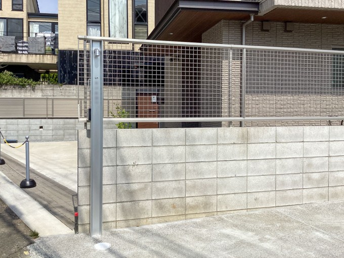 スタイリッシュな門柱には、Only One Clubの「オンブル」を採用。